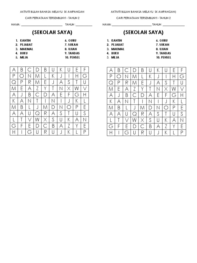 Related : Cari Perkataan Tersembunyi Bahasa Melayu Tahun 1 : Muat turun permainan ini dan uji minda anda sekarang!.